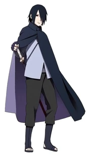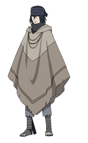Nach Itachis Tod tauscht er sein offenes Hemd mit einem geschlossenen grauen T-Shirt mit hohem Kragen aus. Über die Handgelenke trägt er schwarze Stulpen, während das Uchiha-Wappen noch immer seinen Rücken ziert. Dice Hose ist dieselbe geblieben.